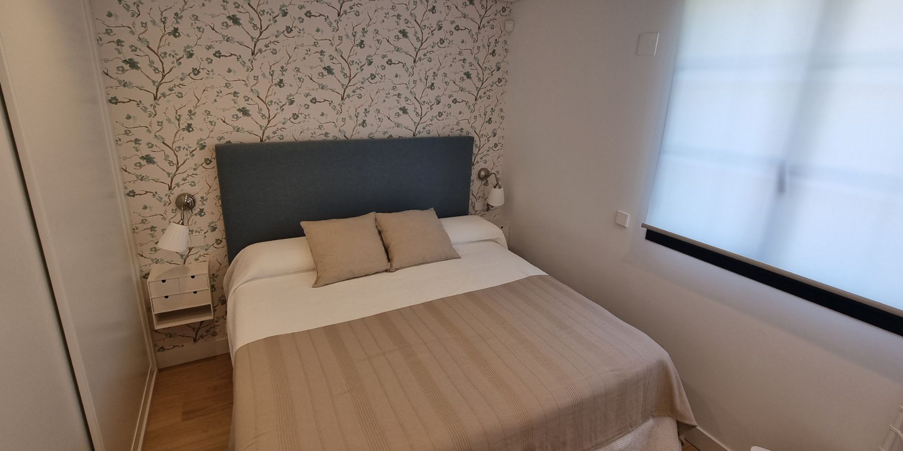 Dormitorio principal: cama doble 180cm x 200 cm.
